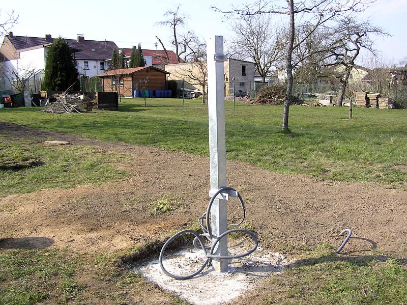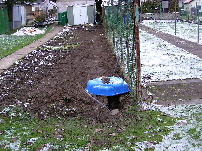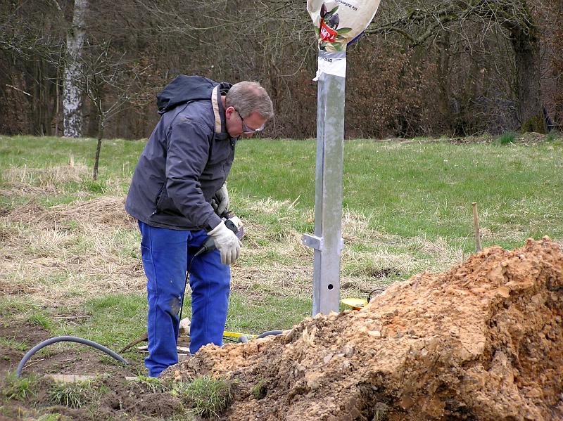 - Ein Fundament für den Mast und den Regensensor musste gegossen werden.