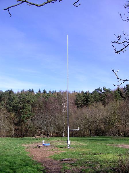 An diesem Mast ist in 2 Meter Höhe eine Traverse zur Montage des Temperatursensors angebracht.