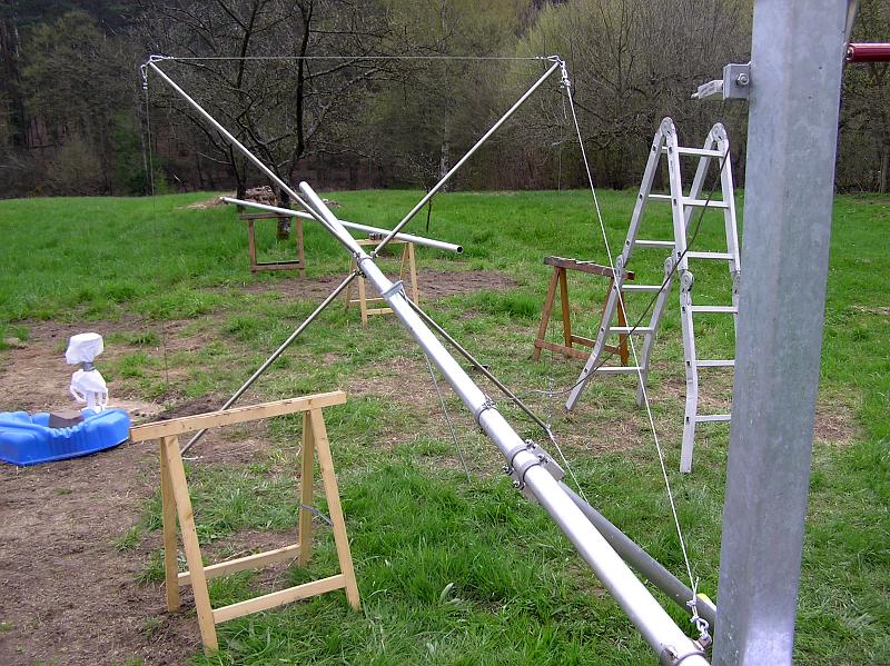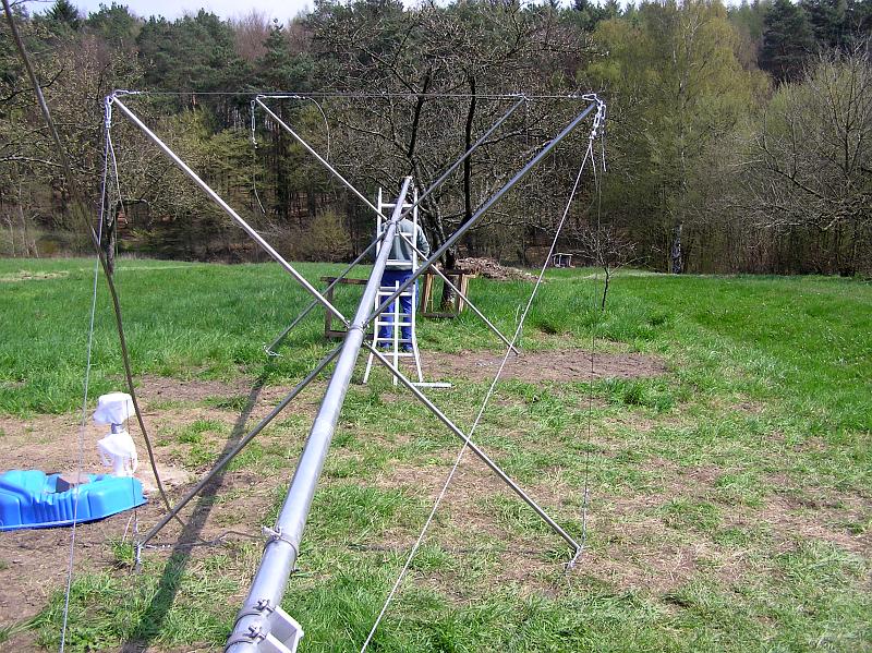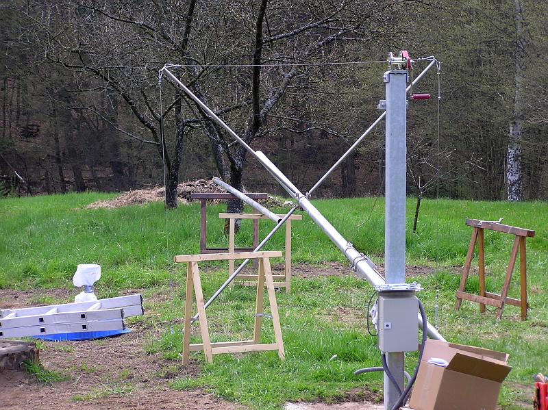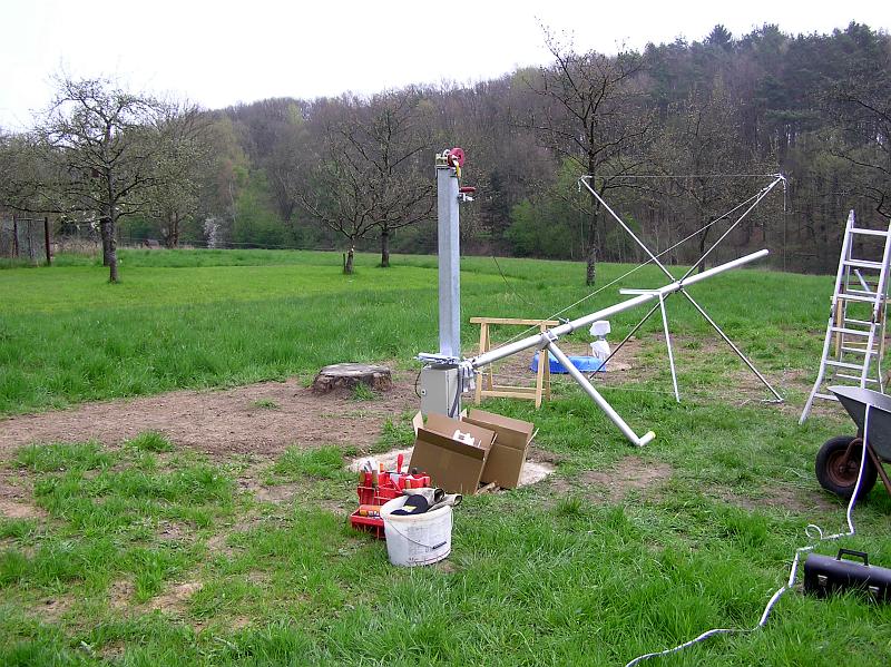 - Ein 11 Meter hoher Mast für den Windsensor musste besorgt werden. Nach langer Suche eines Lieferanten kam der entscheidende Tipp durch die Firma meteomedia. Ein sehr stabiler Kurbelkippmast mit Sailing-Abspannung zu einem unschlagbaren Preis-/Leistungsverhältnis.