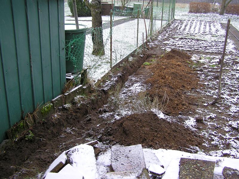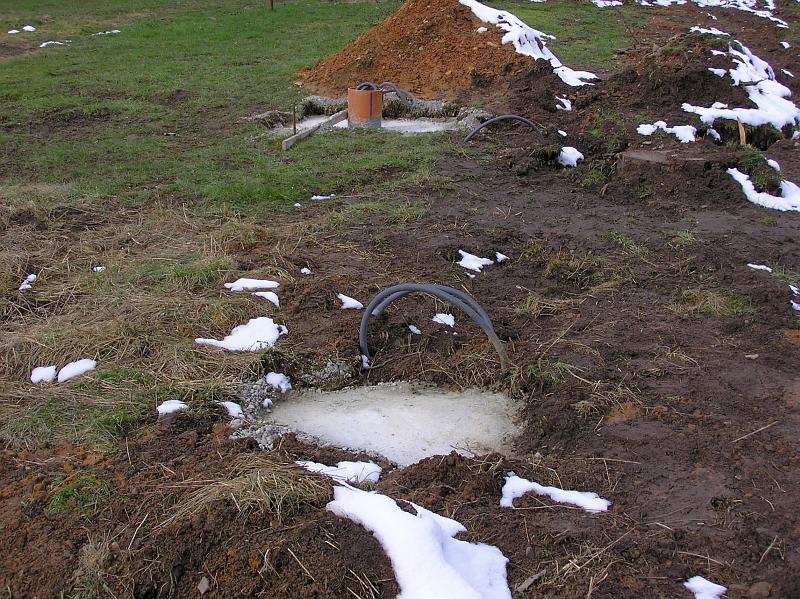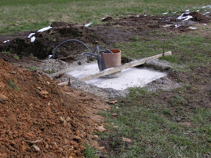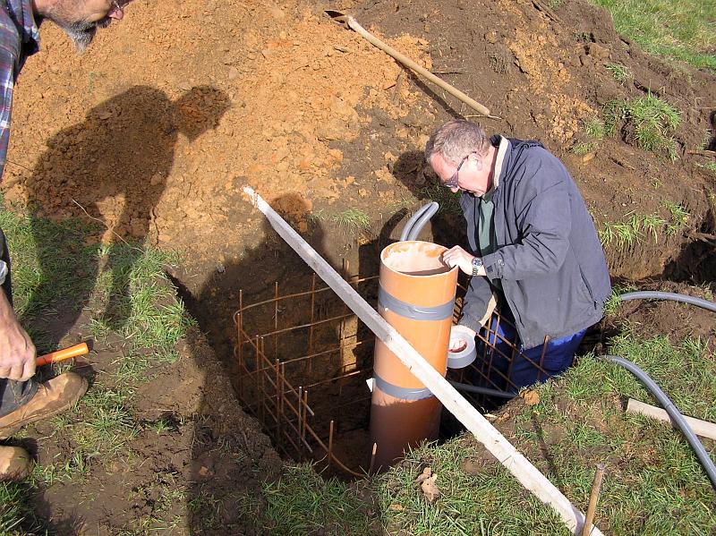 - Ein Fundament für den Mast und den Regensensor musste gegossen werden.