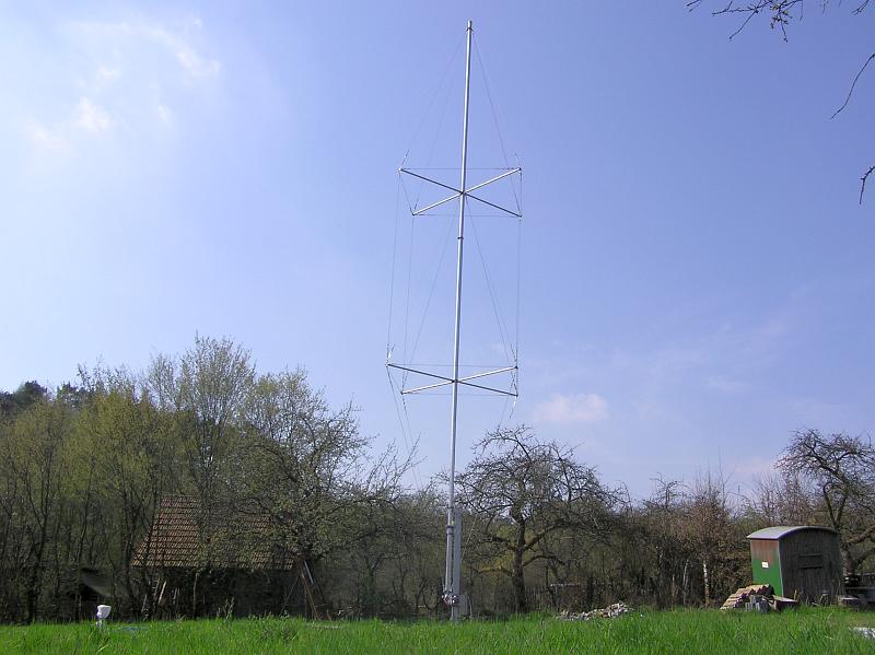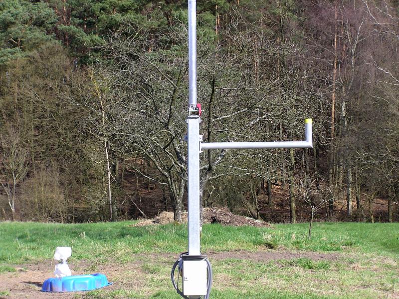 - Ein 11 Meter hoher Mast für den Windsensor musste besorgt werden. Nach langer Suche eines Lieferanten kam der entscheidende Tipp durch die Firma meteomedia. Ein sehr stabiler Kurbelkippmast mit Sailing-Abspannung zu einem unschlagbaren Preis-/Leistungsverhältnis.